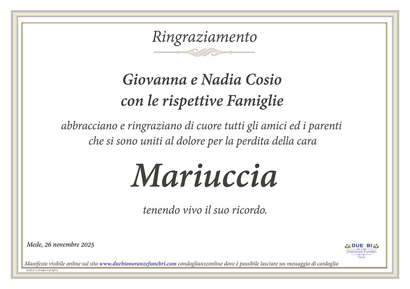 Il tuo messaggio verrà stampato e consegnato alla famiglia di Mariuccia Garberi.
