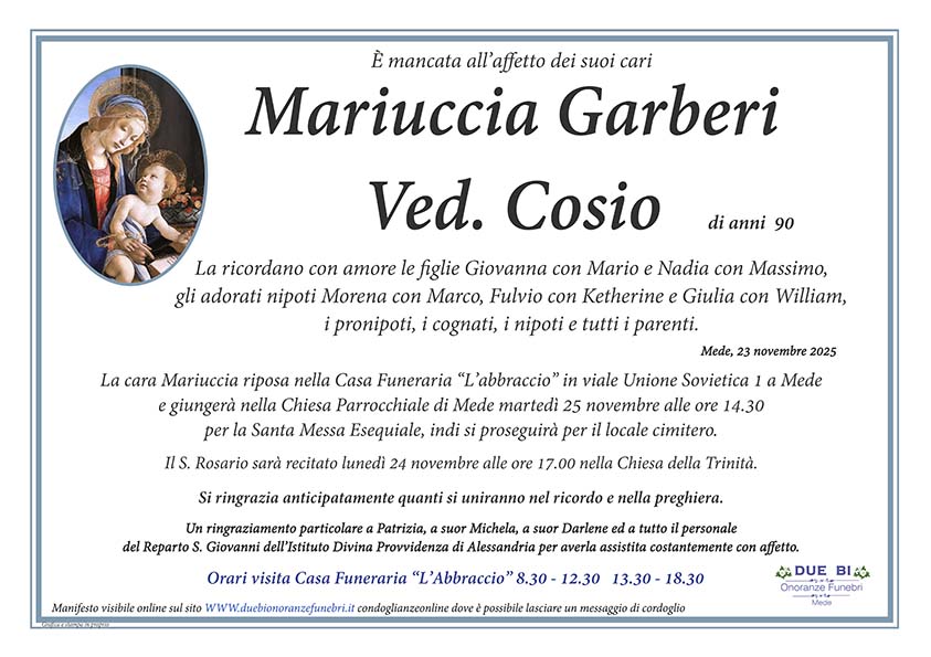 Lascia gratuitamente un messaggio di cordoglio, sarà nostra cura consegnarlo ai congiunti di Mariuccia Garberi.
