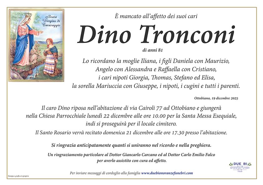 Lascia gratuitamente un messaggio di cordoglio, sarà nostra cura consegnarlo ai congiunti di Dino Tronconi.